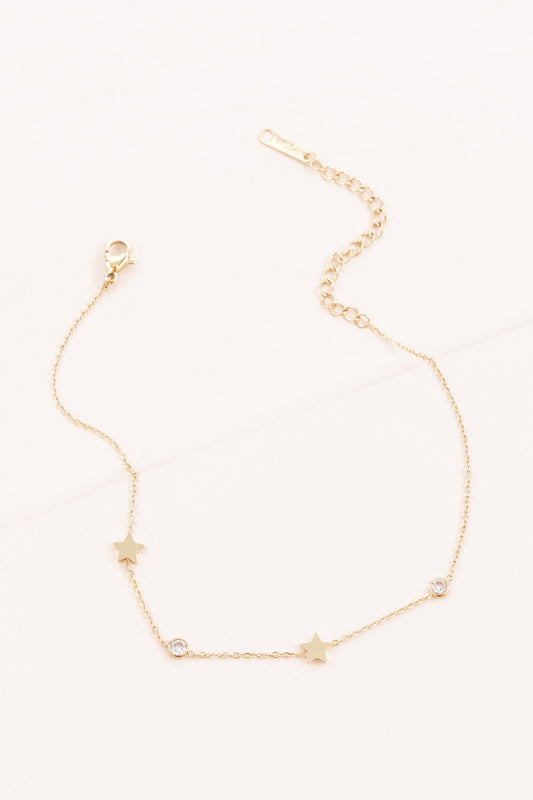 Starry Eyed Rhinestone Anklet, Gold Plated