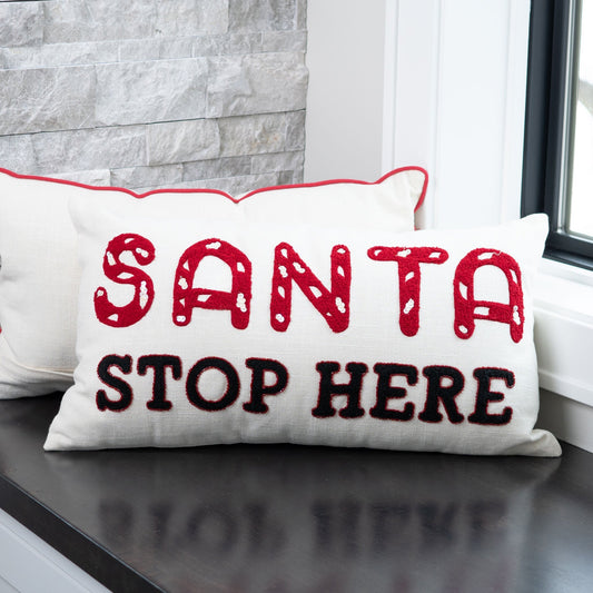 Christmas 12"x22" Santa Stop Here Embroidered Holiday Lumbar Pillow