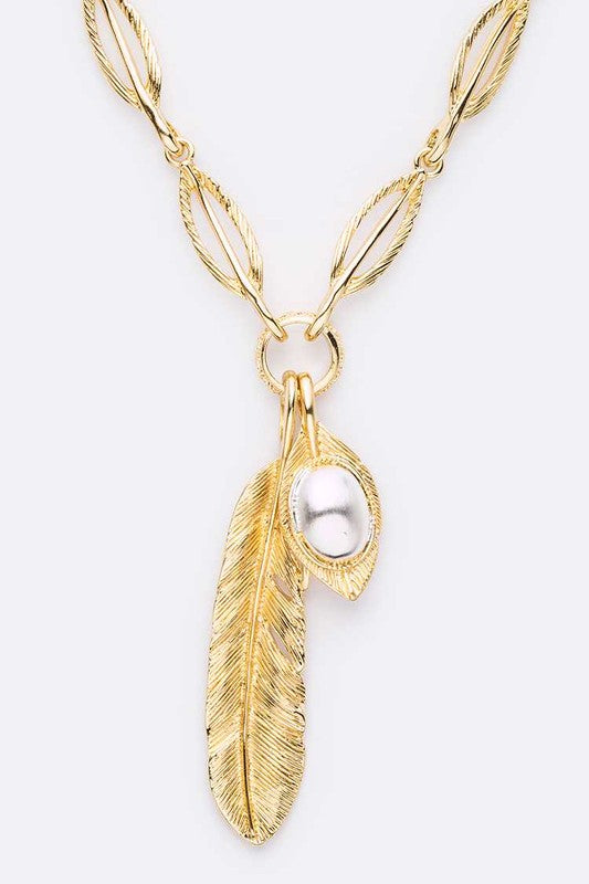 Iconic Pearl Drop Feather Charm Necklace Set