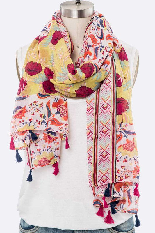Mix Flower Vibrant Print Large Tassel Scarf