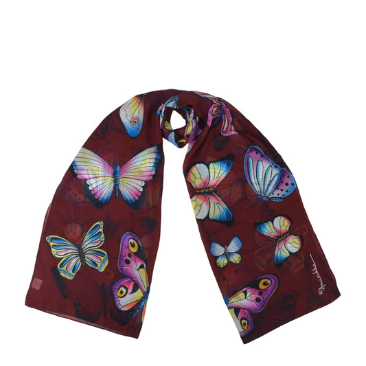 Fabulous Flutter Ruby Butterfly Printed Chiffon Scarf - 3300