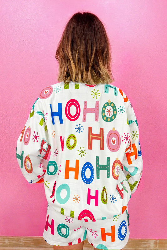 White Ho Ho Ho Letter Graphic Christmas Pajama Set