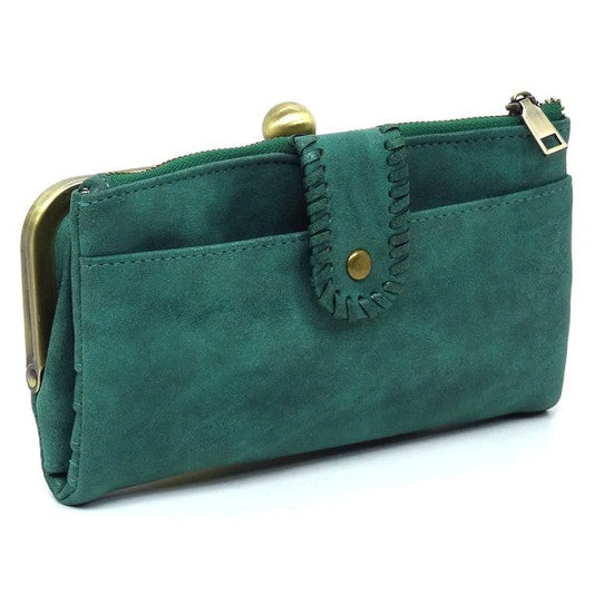 Kiss Lock Crossbody Clutch Cell Phone Faux Vegan Leather Wallet